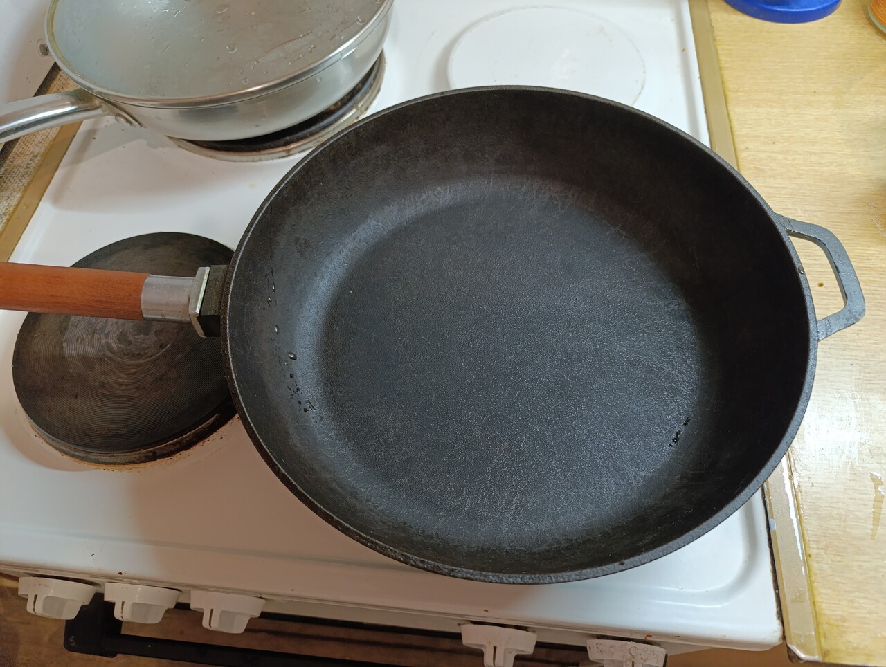А жарить лучше всего на чугунной сковородке. Служит десятилетиями, правда, чуть больше масла уходит. Но на разницу в цене с дорогой сковородой можно масла купить - хоть весь обмажься. Вот только после мытья нужно хорошо вытереть и просушить, а то ржавеет.