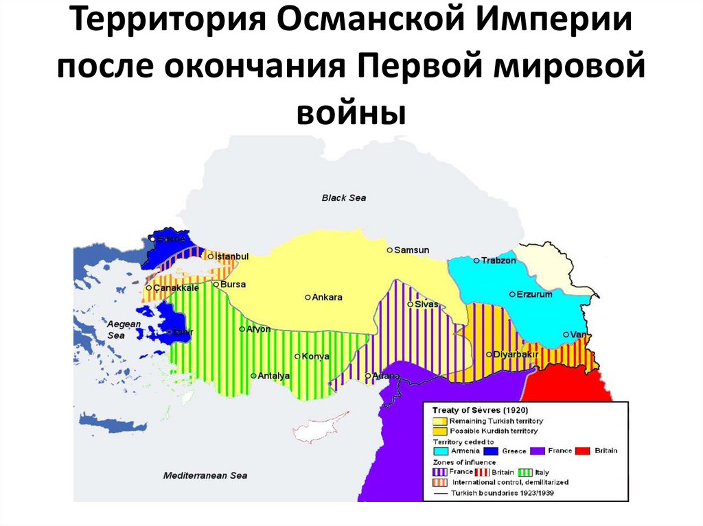 Но ещё интереснее/печальнее/хуже была ситуация в Азии. После капитуляции Турции союзники договорились поделить Османскую империю по национальному признаку: создать национальные государства евреев, курдов, армян...