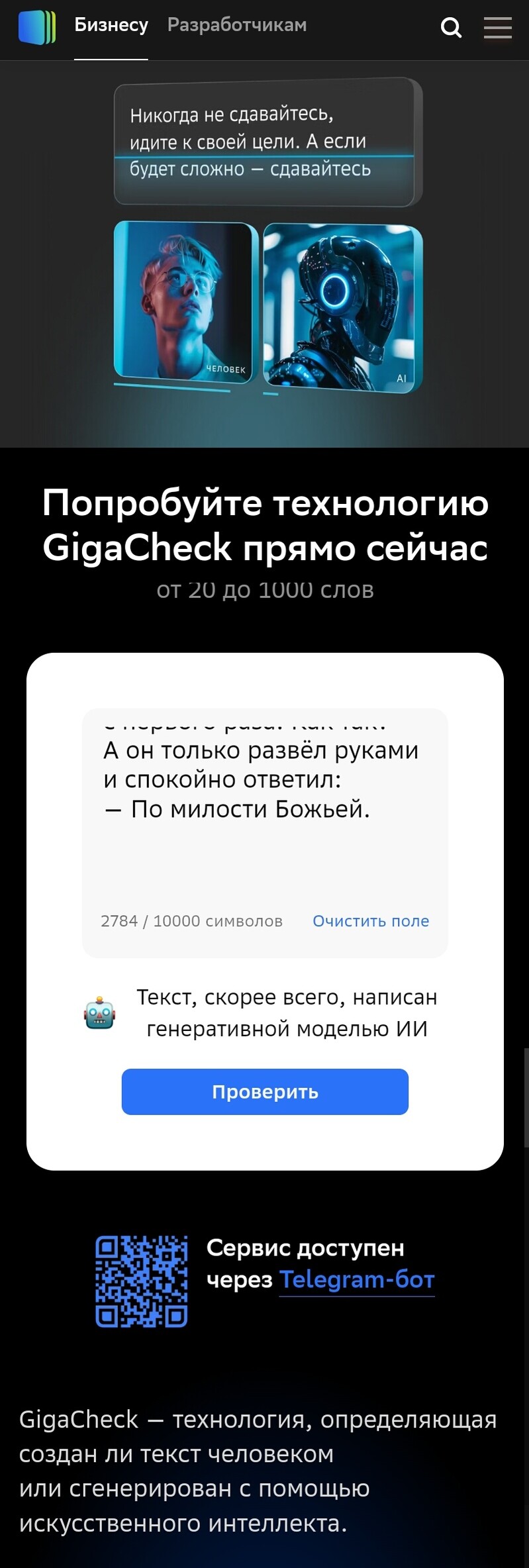 Текст проверен на ресурсе Giga Check. https://developers.sber.ru/portal/products/gigacheck