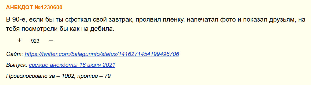 Жаль что не сфоткали - сейчас бы выложили с традиционной подписью о сладкой жизни в СССР "А вы такое помните?", и мем взлетел бы в топ! :-)
