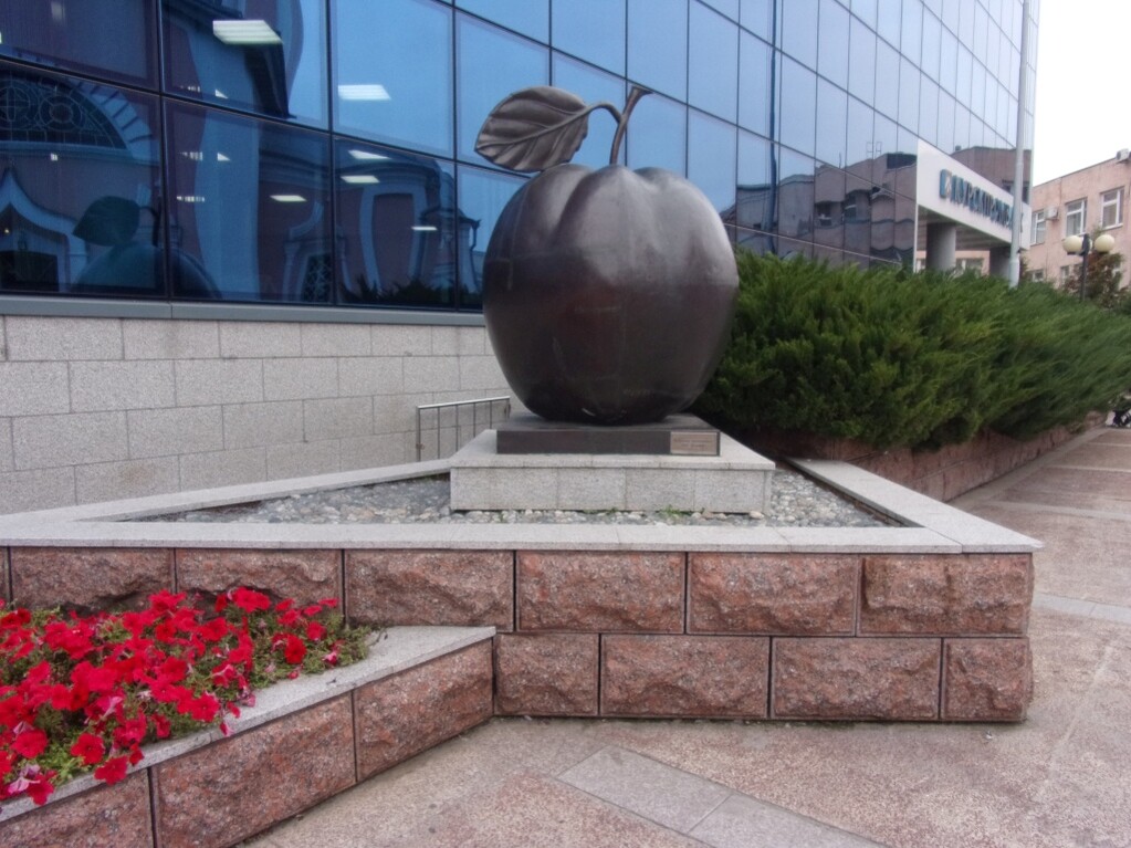 Памятник яблоку на горе Коктобе в городе яблок. Над чем смеяться?