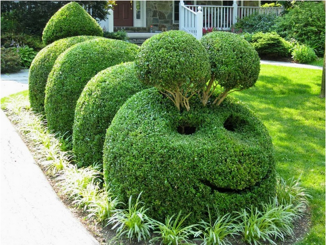 В общем всё мы заметили. И кустик подстриженный под монстра тоже.