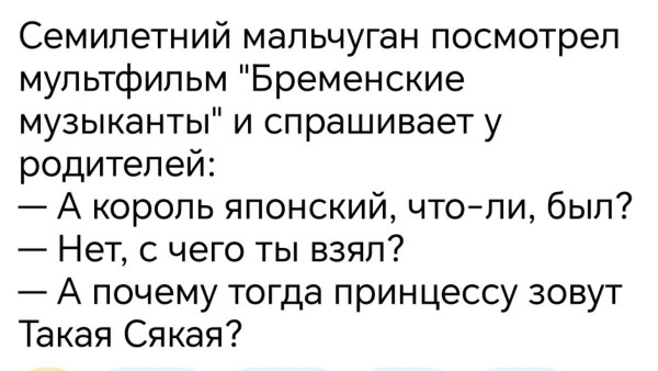 Мальчик мультик смотрел невнимательно. Принцессу звали Трубадурочка.