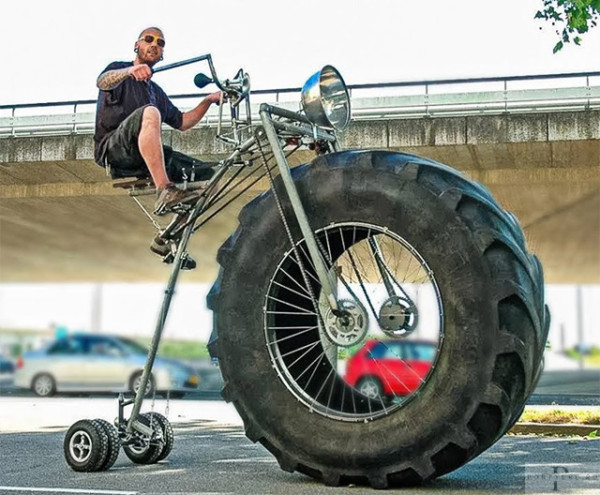 Парень, мечтавший о руле Белаза, сублимировал свою мечту в создание царь-фэтбайка и тоже смотрит на остальной мир на колесах свысока… 🙄