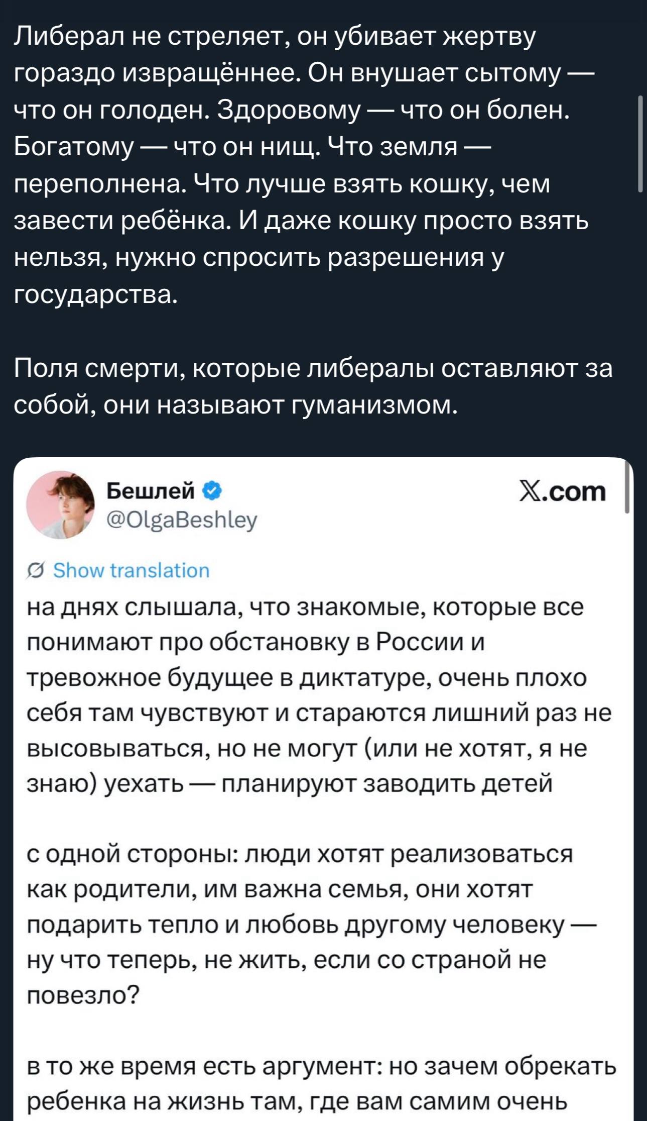 Далеко-то далеко, не о с такими трендами, как в Европе, они вообще действуют в стиле: "То Таллина талеко? – Нет, не талеко! – Через час: До Таллина талеко? – Теперь уше талеко!" Мы-то хотя бы в более-менее правильную сторону гребём. Как вчера в одном вечернем шоу молодой человек из вновь воспитывемых управленцев, умно, человечно и проактивно себя проявивших на СВО, в ответ на фразу ведущего: "Да, там служба, а здесь работа)", – ответил: "Мы и здесь служим. У нас ничего в этом плане не изменилось)"