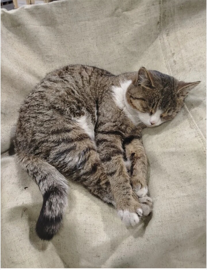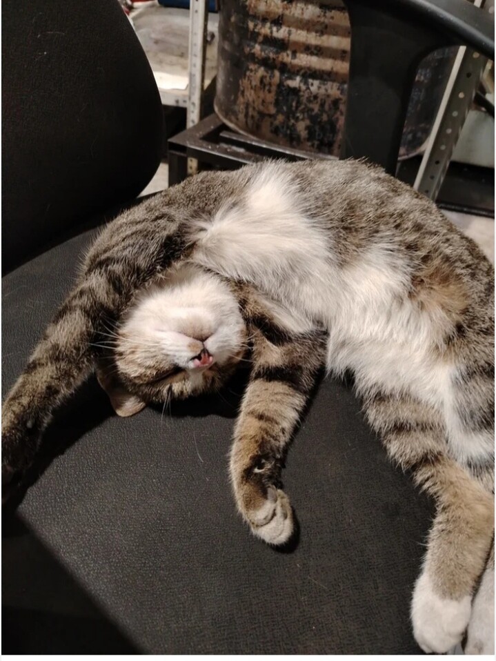 Всем привет.Я работаю на производстве ,и там у нас есть имеется прибившиийся к нам кот.Скумбрия (Скумбрией его называю только я из за его окраса,остальные зовут васей) он прибился в апреле и был диковат,не подходил к людям.Мы начали прикармливать шерстяного,и он привык к нам,и теперь много времени проводит на нашем заводе.Котэ многие любят и постоянно гладят,когда ему надоедает он начинает прятаться.