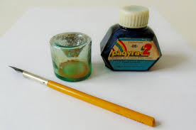 Вот это чернильца, рядом не ручка, а перо. Вещи неудобные, шариковые ручки много лучше. А вот парту жаль..