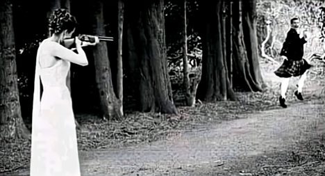 Она левша. Только это ей не поможет - промажет! Приклад неплотно прижат к плечу, и стойка неустойчивая.