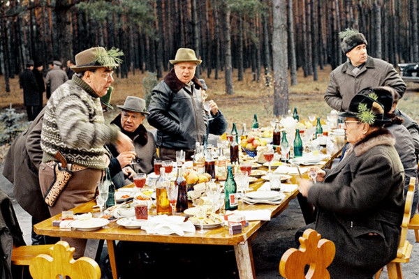 Среднестатистические советские пенсионеры пропивают пенсию после удачной охоты.
