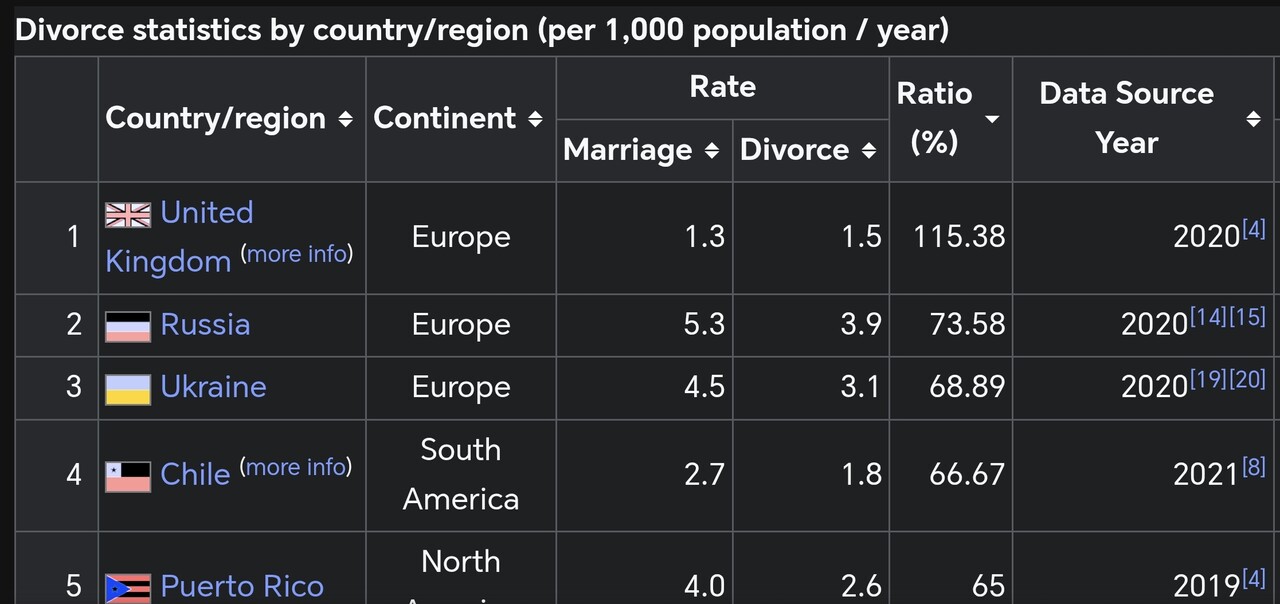 В Ирландии, чтобы взяли заявление на развод, надо доказать, что вы уже минимум четыре года живёте раздельно. Так что разводов там мало. Но и средний возраст вступления в брак - далеко за 30.