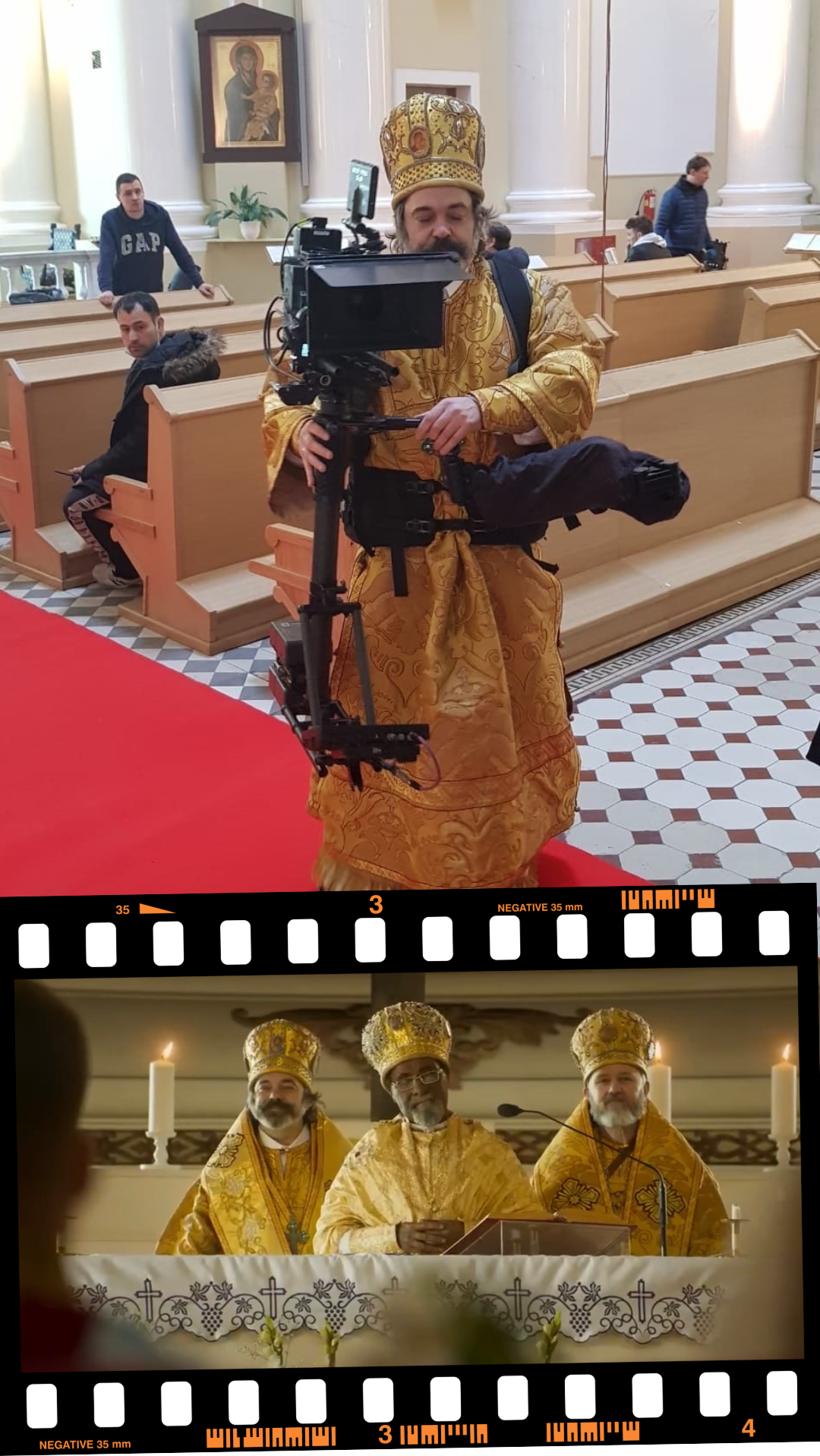 Техническим директором российской команды фильма был известный в профессиональных кругах оператор и преподаватель Академии театрального искусства Максим Волох. Увидев роскошные усы и бороду Максима Борисовича, режиссер стал умолять его сняться в роли священника. Пришлось переодеваться в якобы церковные одеяния. Но работу технического директора никто не отменял, требовалось опробовать стедикам - сложное устройство, обеспечивающее стабильность положения кинокамеры во время перемещений оператора. Что бы не тратить время на переодевание, стедикам нагрузили прямо поверх сценического костюма. В таком виде его и запечатлел кто-то из технических работников, находящихся на съемочной площадке.