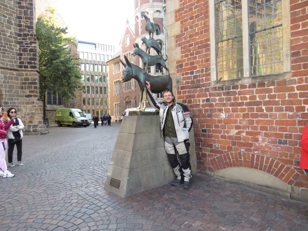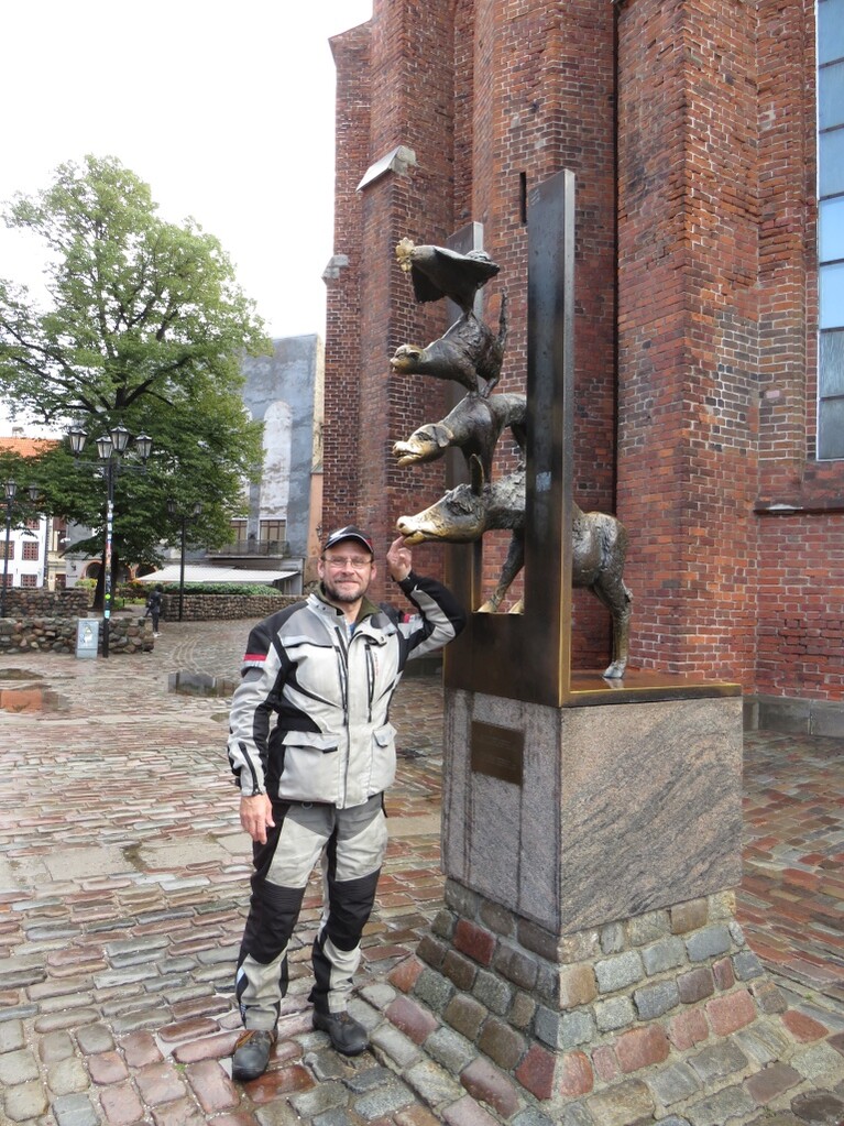 И вот как-то в Германии приехал в славный городок Бремен, известный на весь мир своими животными-музыкантами. Оставил мотоцикл просто на какой-то улице и пошёл гулять по центру. А хорошенько погуляв (и отметившись у знаменитого музыкального квартета), я вдруг осознаю, что совершенно не помню, на какой именно улице находится мой мотоцикл. К счастью, обычно я сразу везде начинаю всё вокруг фотографировать, поэтому первым делом стал просматривать фотографии в надежде найти название улицы или приметную точку поблизости. И нашёл... козла! Да, там действительно был памятник козлу! Дальше осталось через гугл-транслейт выяснить как пишется козёл по-немецки, а затем через навигатор, найдя этого Ziegel на карте города, проложить к нему пеший маршрут.
