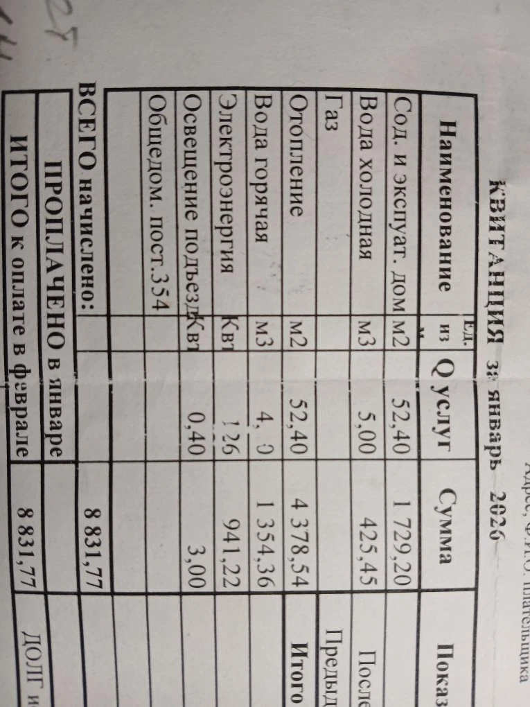 Ха! Три тысячи? А не хотели 4378,54 с общедомовым счётчиком? И это в не самом холодном январе. Квитанция всё том же Сочи.