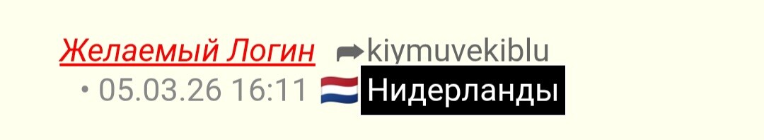 Желаемый Логин➦kiymuvekiblu• 05.03.26 16:11🇳🇱