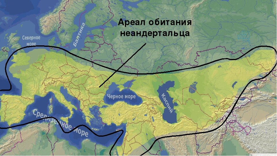 Эта карта может быть верной на какой-то век, но за время существования неандертальцев сменилось несколько ледниковых периодов! И глобальных потеплений между ними. Зона выживания могла смещаться на пару тысяч км то к северу, то к югу.