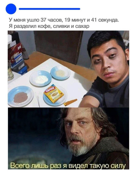 Смешно! Плюс поставил! Хотя мне так и непонятно, зачем сливками и сахаром портить кофе в пакетике, который и без этого гавно?