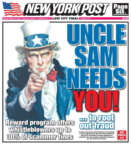 Министерство финансов США объявляет набор доносчиков-энтузиастов, предлагая всем желающим сообщать об известных им фактах мошенничества и совершения экономических преступлений в обмен на долю от штрафов, которые будут взиматься с преступников (вплоть до 30%).