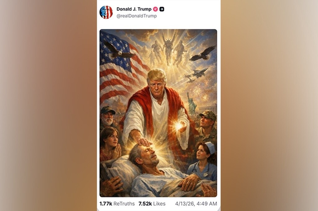 При любых культах личности икону со своим ликом в образе бога всем диктаторам как-то хватало ума на публику не показывать, но нашелся таки дебил - похвастался.
