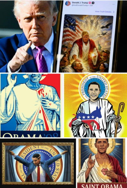 Ужасный скандал разгорелся в американском сегменте интернете, где нежные религиозные чувства резко уверовавших демократов оскорбила картинка с Трампом, исцеляющим больного...
