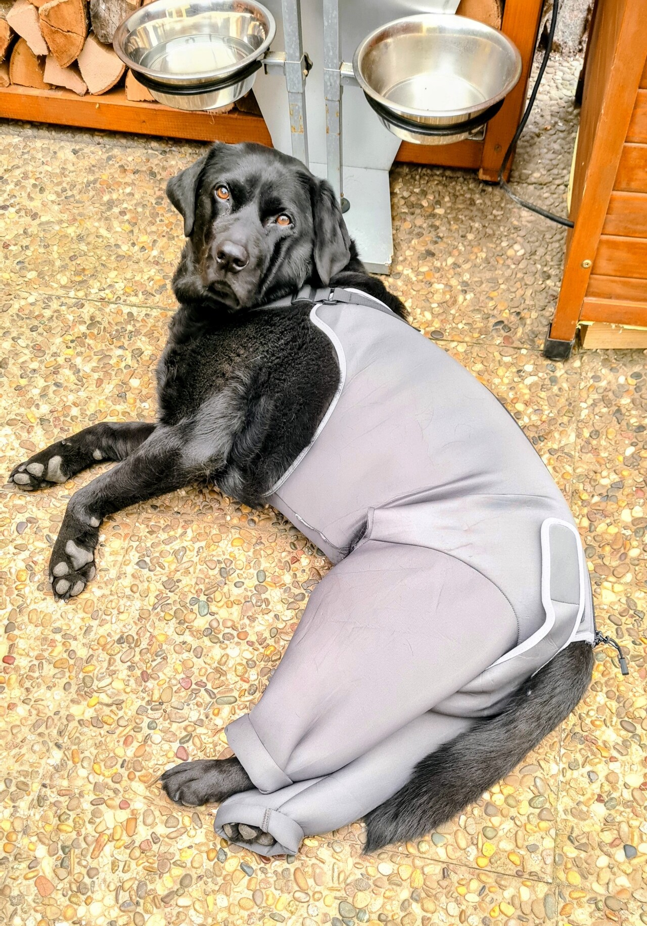 Я тут попробовала сегодня собакену ПИНЖАК надеть, чтобы каску снять. Пока он как-то не оценил и кажется меня начинает не любить. Видимо к каске прикипел.