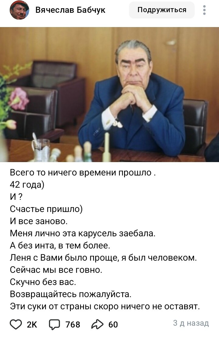 Глядя на то, что происходит сейчас у нас в стране (я говорю у нас, потому что я давно уже тоже гражданка РФ), я в шоке, от того, что благодаря действиям всех этих минцифр и прочих хуеплетов, мы скатываемся к уровню Кыргызстана в те годы. Не развиваемся блять, а откатываемся, в то время, как они вообще-то развиваются ))
