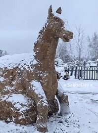 В Якутии из коровьего навоза слепили фигуру лошади.