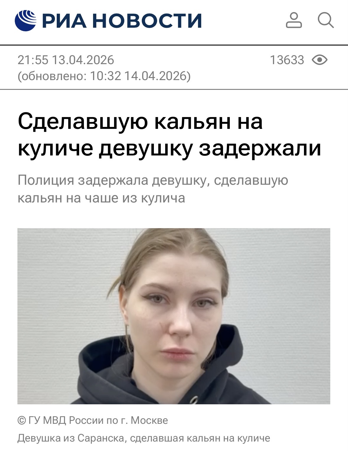 Столичные полицейские задержали подозреваемую в оскорблении хлебобулочных изделий, которая в одном из столичных баров сделала из кулича чашу для кальяна, сообщили в ГУ МВД РФ по Москве.